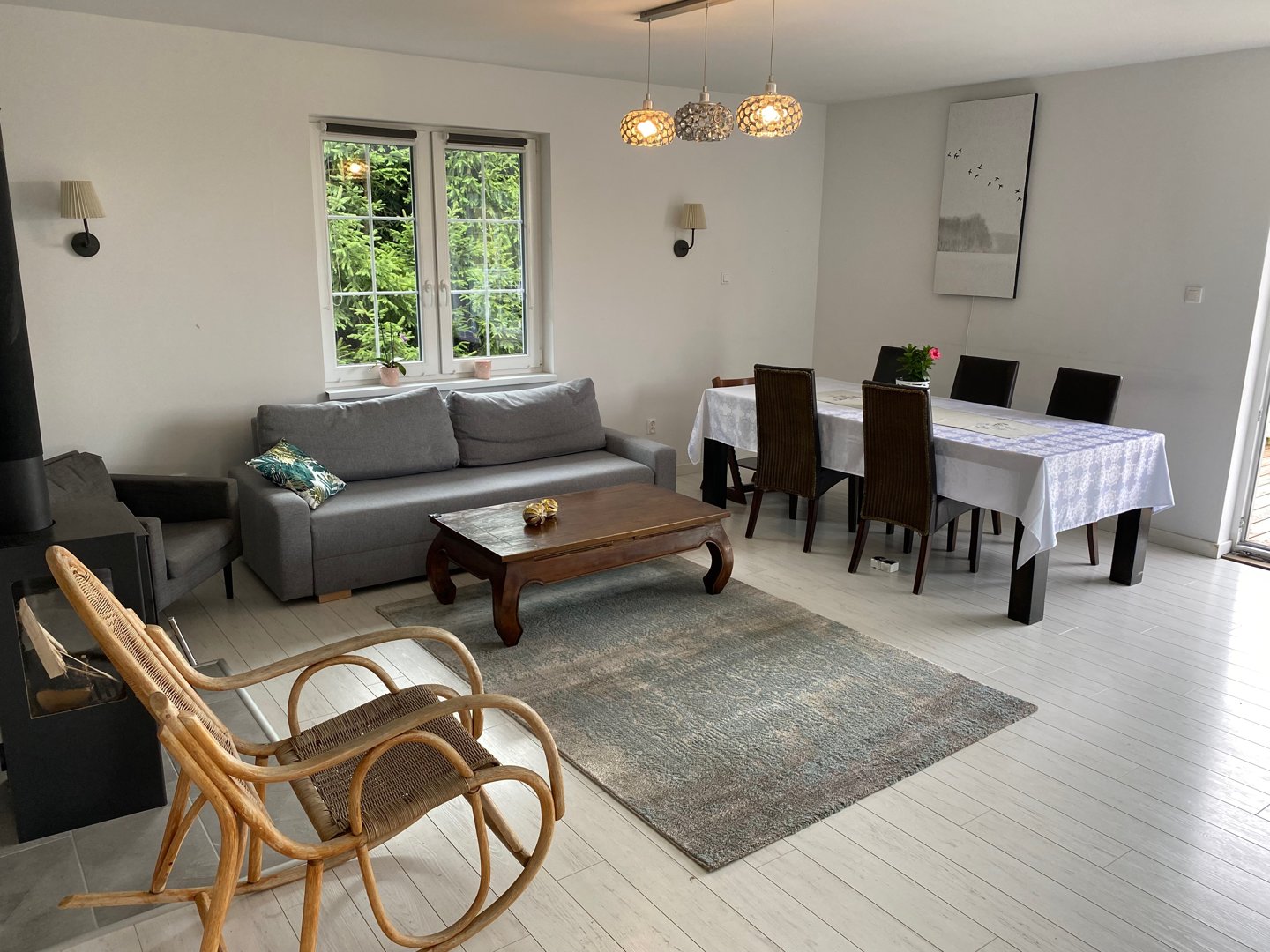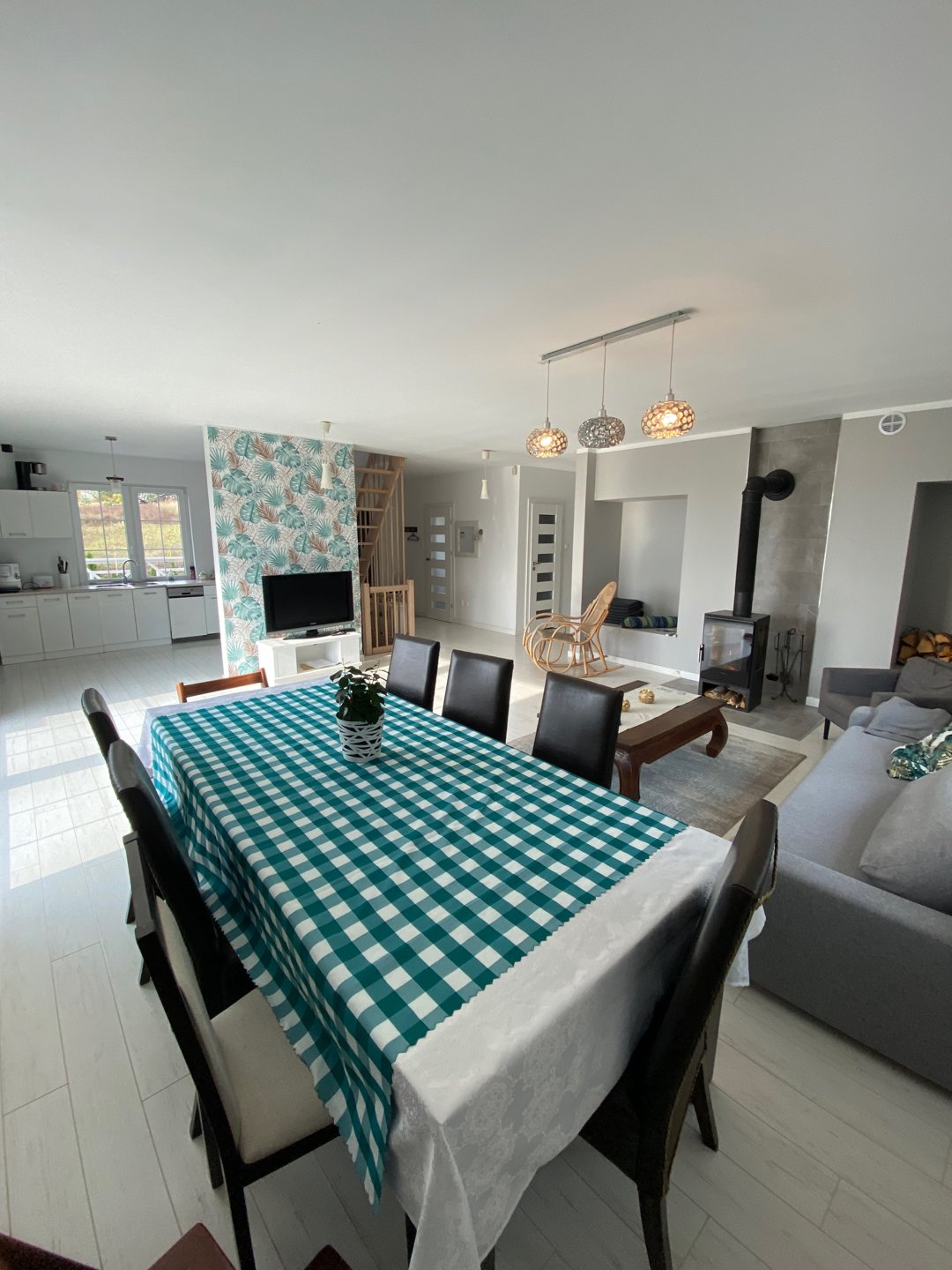 W domu znajdują się cztery dwuosobowe pokoje, w pełni wyposażona kuchnia oraz jedna duża łazienka z osobną toaletą. Dom posiada przestronny salon połączony z jadalnią. Specjalnie z myślą o naszych najmłodszych gościach przygotowaliśmy kącik do zabawy.